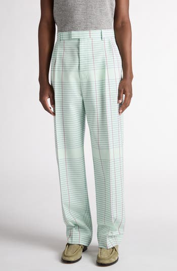 At first glance, the geometric print of these runway-featured wool trousers looks like classic plaid, but a closer inspection reveals the lines of notebook pages. Double-pleats at the waist showcase the label's knack for impeccable tailoring.
