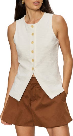 Complete your look with the casual sophistication of this lightweight knit vest that buttons down the front.