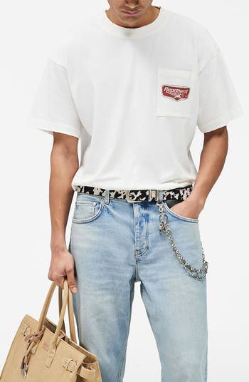 Distressed logo graphics and vintage-inspired fading bring worn-in attitude to this cotton-T-shirt cut in a slightly boxy silhouette.