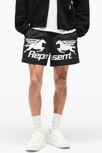 Jump-start your pool fits with these soft and sporty swim shorts with a signature logo graphic.