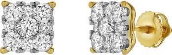 Nova 14K Yellow Gold Cluster Lab Grown Diamond Unisex Earrings - 1 Cts