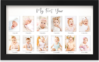 Celebrate your baby's growth with KeaBabies Nova Baby's My First Year Photo Frame. This nursery picture frame elegantly displays 12 monthly photos, capturing milestones from first smiles to steps, up to their 1st birthday. Fits all decor styles and makes a perfect baby registry gift for new parents.