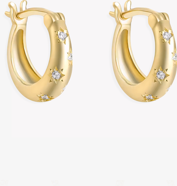 These polished huggies are adorned with playful, scattered cubic zirconia, bringing a whimsical charm to your look. Perfect for adding a touch of magic to your everyday style or special occasions.