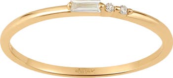 This delicate band set with one baguette-cut and two round-cut diamonds brings simple sophistication to your hand. Delivered from the Made by Mary studio in a giftable book-style box, each piece is carefully crafted with your story in mind.