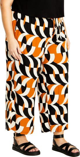 A vibrantly playful pattern instantly brightens up these cropped, wide-leg pants topped with a comfortable drawstring waist.