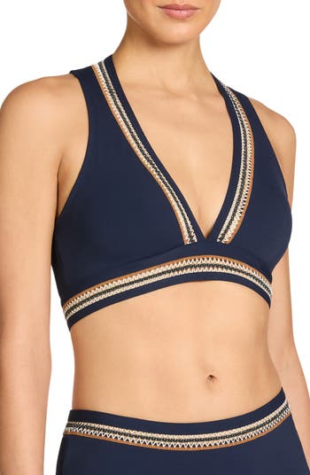 Peek-a-boo crochet-stitch insets add a little mischief to this bikini top, giving you flirty vibes and flawless adjustability every time you step onto the shore.