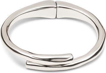 Tubular-shaped 18K gold–plated or Sterling silver-plated bangle bracelet with fluid curves and a cool, minimalist appeal.