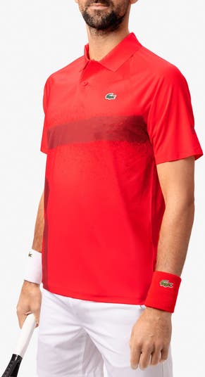 A silicone crocodile brands the chest of a relaxed, short-sleeve polo cut from ultrasoft moisture-wicking fabric.