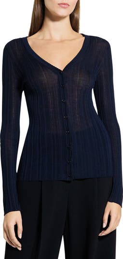 An airy pointelle rib lends a lightweight feel to this wool-blend cardigan that's perfectly chic layered or on its own.