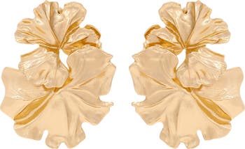 Sculptural leaves catch the light on these wavy metal drop earrings that frame your lobes with stunning shine.