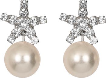 Dazzling stars anchor lustrous faux pearls in these drop earrings that balance sparkle and elegance.