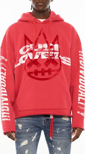 The cotton hoodie makes a statement with oversized text print wrapping across every angle, giving street style a fearless edge.