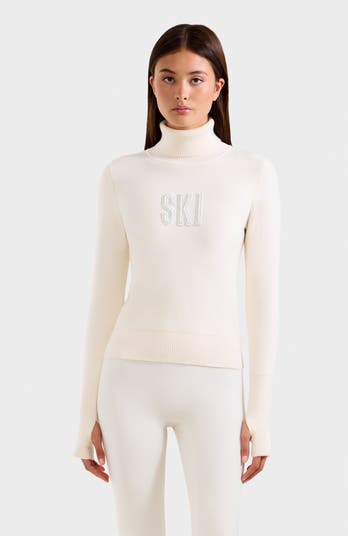 Novie Knit Embellished Ski Logo Turtleneck Sweater