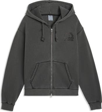 Built from soft cotton with a faded finish, this full-zip hoodie features weathered graphics at the front and back for a bold look that lands from every angle.