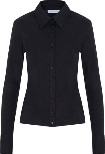 The Nuage Shirt by Anne Fontaine is a timeless bestseller, loved for its blend of elegance, comfort, and versatility. Crafted from high-quality jersey Pima cotton-poplin, this long-sleeved jersey shirt offers a figure-flattering silhouette while ensuring a relaxed and comfortable fit. From boardroom meetings to casual outings, the Nuage Shirt adapts to your needs with effortless grace. Pair it with tailored trousers for a business-ready look, or dress it down with your favorite jeans for chic, upscale casualwear. Elevate your style with the Anne Fontaine Nuage jersey shirt. Its combination of premium materials, exquisite detailing, and unmatched versatility makes it an essential piece for the modern wardrobe. Experience comfortable sophistication like never before.