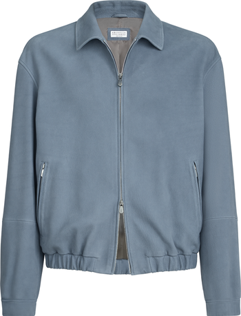 - Two-way zip closureShirt-style collarElastic cuffsHand pockets with zipperCupro liningTwo interior pockets with button closure and pen holderElasticized hem