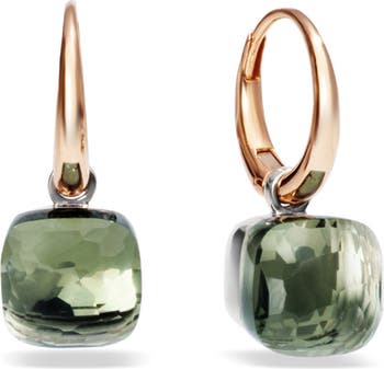 Faceted prasiolite stones hang from tapered 18-karat rose-gold huggie hoops for a bit of earthy glimmer at your lobes.