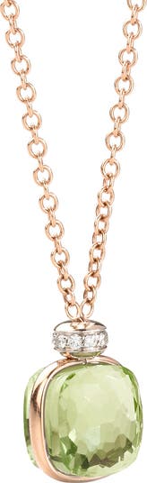 A cushion-cut prasiolite-quartz pendant tipped with pavè-diamond accents catches the light on this Italian-crafted necklace made from high-polish 18-karat rose gold.