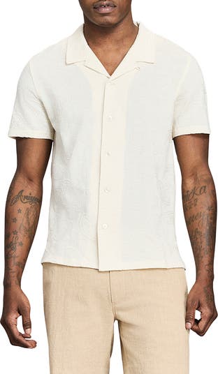 Premium cotton jacquard patterned in swirling paisleys brings breathable comfort and resort vibes to a camp shirt made with a straight hem designed specifically to be left untucked. Wear it on its own or layered and unbuttoned to change up your look without losing your sunny-day style.