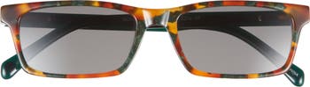 Lightweight acetate and a slim rectangular profile define everyday sunglasses fitted with polarized CR-39 lenses for glare reduction and superior clarity.
