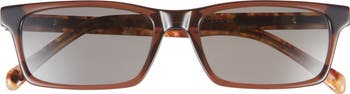 Lightweight acetate and a slim rectangular profile define everyday sunglasses fitted with polarized CR-39 lenses for glare reduction and superior clarity.