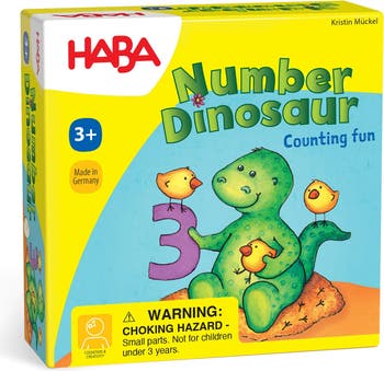 Introducing the HABA Number Dinosaur Game, a must-have travel essential for kids aged 4-8! This educational preschool learning toy offers a fun and interactive way to teach counting and quantity recognition. The compact size of this mini dinosaur travel game makes it perfect for car rides, flights, or family game nights. Enhance your child's math skills with this engaging game that includes a whimsical wooden dinosaur, 25 memo tiles, and game instructions. Gather the whole family for a dino-mite time filled with friendly competition and quality time together. Make learning numbers exciting with the HABA Number Dinosaur Game - the perfect addition to your kids' travel games collection!