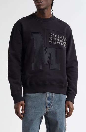 Margiela’s renegade DNA is stitched into every detail of this cotton-fleece pullover, starting with a dominating tonal monogram front and center. Massive numeric embroidery overlays the logo—a signature flourish that instantly marks this piece as maison property.
