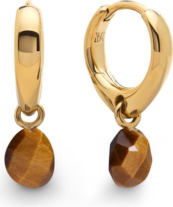 Faceted tiger's-eye drops bring an organic pop of color to these handcrafted huggie hoop earrings of gleaming 18-karat gold vermeil.