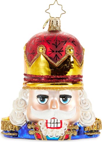 Made from mouth-blown, hand-painted glass, this glitter-dusted nutcracker is an heirloom-quality ornament worthy of collecting or gifting.