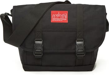 - Double Buckle flap openings with Manhattan Portage logo styled design