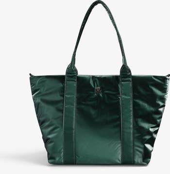 Shopper bag made of metallic PU and lightly padded, inner lining with zippered pocket