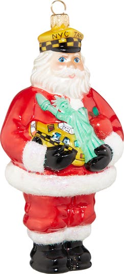 Made from fine blown glass and dusted with sparkly glitter, this handmade Santa ornament celebrates the season along with some of New York's most well-known icons.