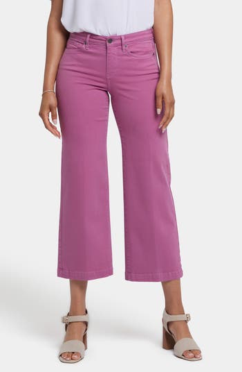 These are so cute. Love the wide, cropped leg. They are not as stretchy as the usual NYDJ jeans material, which is fine. Fits like other NYDJ - size down one. I really love them and can wear with so many different tops and shoes.