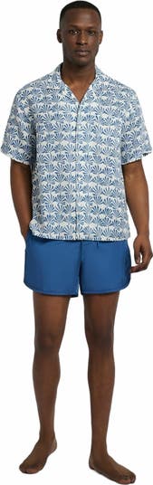 - Designed with a drawstring waistband, this trunk offers a comfortable, versatile fit with a four-inch inseam. It comes in nylon swim fabric with a crinkled texture and a scallop-edge hem.