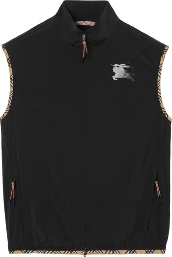 A funnel-neck gilet in super-soft nylon. Part of our new activewear collection, the lightweight style is perforated with our signature check at the back panel for breathability and features a reflective Equestrian Knight Design, screen-printed with a gradient effect as if in motion. Cut to a regular fit and trimmed with elasticated Burberry Check taping in signature archive beige.||Two-way zip closure|Side zip pockets|Printed Equestrian Knight Design at chest|Comes with a garment bag