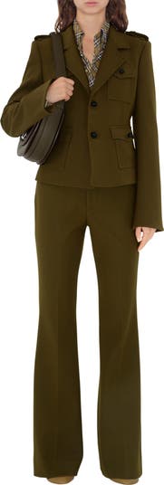 A single-breasted jacket made in Italy from a nylon wool blend twill with a hint of stretch. Tailored to a slim fit with a pleated detail at the back hem, the design is finished with epaulettes and knotted leather buttons.||Single-breasted button closure|Notch lapels|Chest button flap pockets, side button flap pockets|Fully lined, fused construction, padded shoulder |Comes with a garment bag