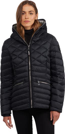 The Pajar women's Nyota lightweight mixed-diamond quilted packable jacket is a perfect blend of style and convenience. It features angled zipper pockets, a fixed hood and a packable silhouette ideal for travel.