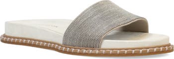 Shimmering beads highlight the wide strap of a effortlessly sophisticated slide sandal that's lightly cushioned for extra comfort.