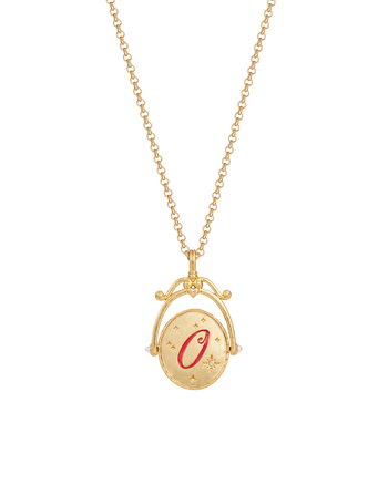 Our vintage style gold spinner initial necklace makes a wonderful gift or treat yourself as an act of self-love. Set in 22ct worn gold brass, on one side you'll find your 'O' initial engraved in a beautiful scroll font, on the other side, a hand-painted orchid. Representing luxury and grace, it will take centre stage in any jewellery collection.