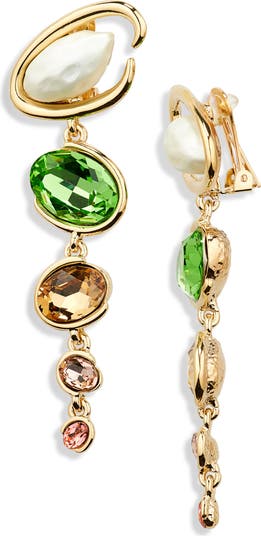Colorful crystals and faux pearls set in graduated O-shaped links—inspired by the founder's signature—shine on these elegant drop earrings crafted in Italy.