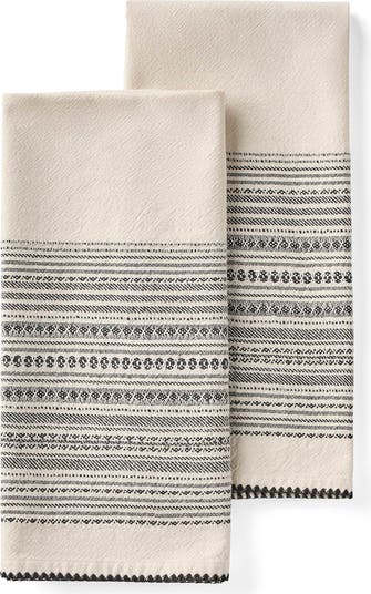 Imbue your living space with an artisanal splash with this duo set of yarn-dyed organic-cotton hand towels featuring an intricately woven pattern and crinkled texture.