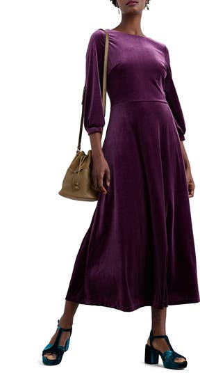 A flared skirt swishes with every step you take as you strut through your day in this sumptuous velvet dress enhanced with comfortable stretch.
