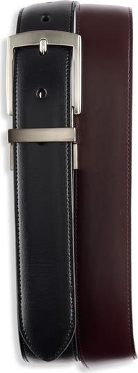 This reversible leather belt from Oak Hill offers two distinct looks in one. Take your pick from black on one side or brown on the other to coordinate with all your looks. Designed at DXL with precise proportions for Big and Tall guys, the leather style is finished with a brushed nickel buckle and metal keeper.