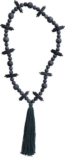 Oak Wood Bead Garland with Cotton Tassel, Black