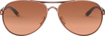 Fluid lines and flattering shape combine on Oakley's lightweight, teardrop sunglasses, complete with custom graphics on the stems. Designed for optimal eye coverage and peripheral vision, these shades serve up serious comfort for anyone on-the-go with fixed hinges, no-snag nose pads (your hair will thank you) and Unobtanium® stem pads.