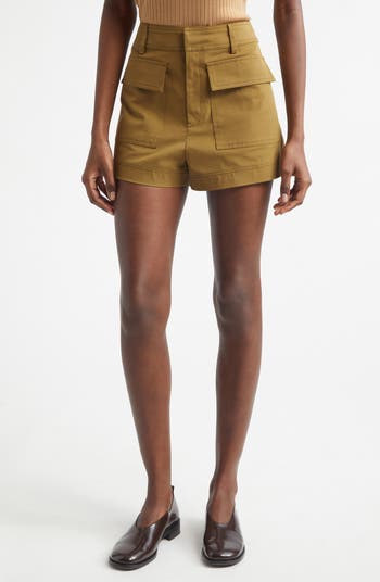Chase sunny-day adventures in these high-rise shorts cut from soft cotton-blend twill with comfortable stretch. Cargo patch pockets at the front bring the look an on-trend utilitarian vibe.