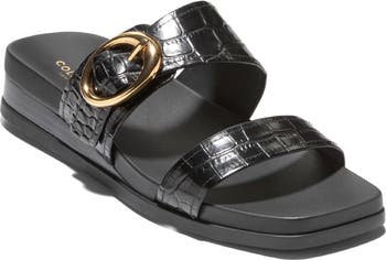 A FlexCraft cushioning system puts comfort under every step you take in this croc-embossed leather sandal elevated by a stacked wedge heel.