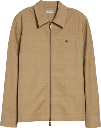 This zip-front jacket is made from a check-patterned cotton jacquard weave and designed in an oversized fit. Signature B-cut hardware with an antique finish authenticates the style.