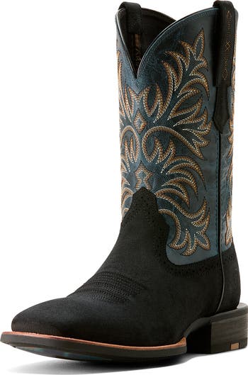 Classic Western style meets modern comfort in this leather-and-suede cowboy boot featuring traditional five-row flame topstitching and a flexible Duratread™ sole with ergonomic support.