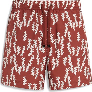 A flexible drawstring waist offers the perfect fit in these beach-to-boardwalk swim trunks patterned in a vacay-worthy print.
